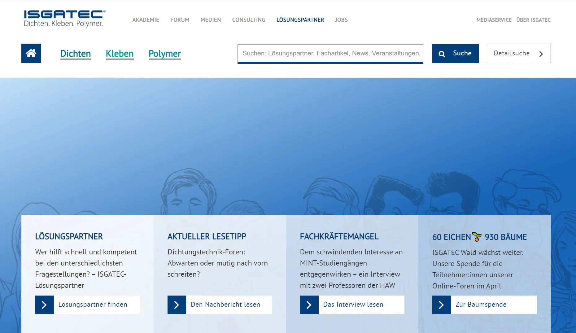 Der Wissenmanagement-Anbieter ISGATEC GmbH hat bei dem Relaunch von www.isgatec.com auf Umbraco-Basis erfolgreich mit Site Point zusammengearbeitet. Warum erfolgreich? Umbraco ist die ideale Plattform, um die aktuellen Anforderungen an ein modernes Wissensmanagement im Bereich Dichten. Kleben. Polymer. zu erfüllen und offen für die kommenden Anforderungen. Das hat ISGATEC bei der Plattformsuche geahnt, die Zusammenarbeit mit Site Point hat den Beweis geliefert.
